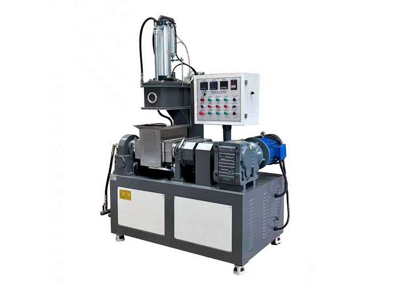 物料受壓砣的壓力,在密閉的槽內(nèi)經(jīng)過以不同速比回轉(zhuǎn)的兩個(gè)轉(zhuǎn)子的剪切、擠壓、攪拌、折卷等捏煉作用后,塑(混)煉成所需的原料。