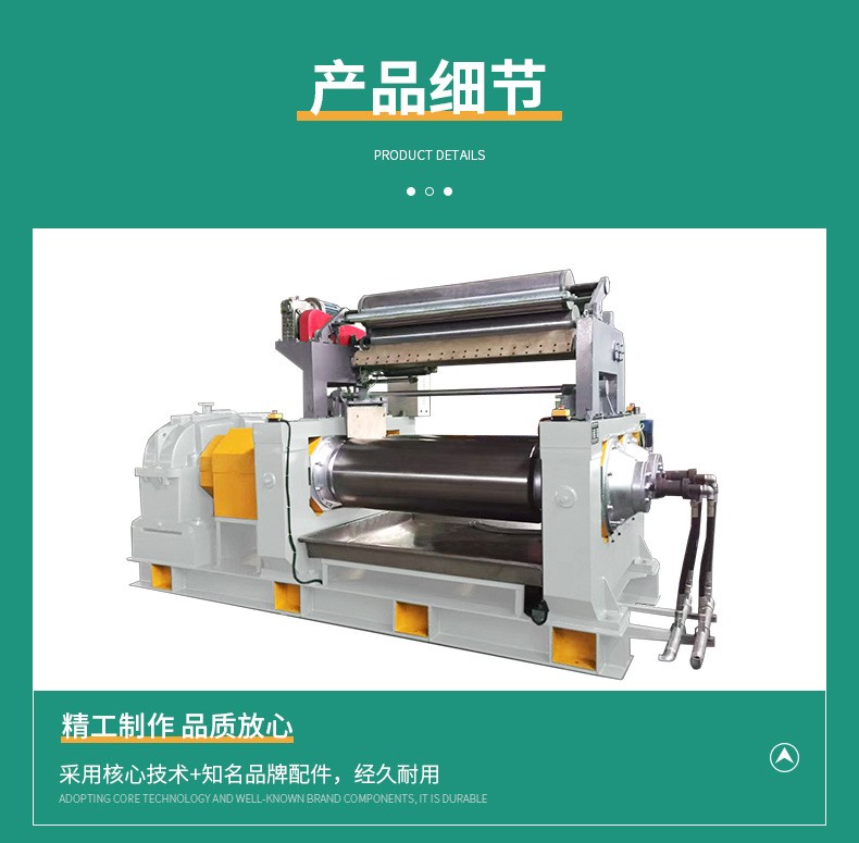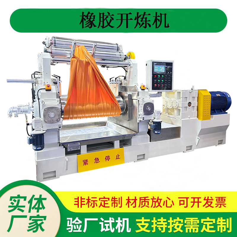 主要用于橡膠的塑煉、混煉、熱煉、壓片等工藝過程。通過兩個(gè)相向旋轉(zhuǎn)的輥筒對橡膠進(jìn)行擠壓、剪切和混合,以達(dá)到塑化和均勻混合的效果,從而提高橡膠制品的品質(zhì)。