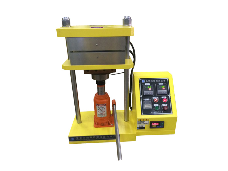 將原料放于鑄模內(nèi),置于本機(jī)兩電熱板間,依據(jù)原料性質(zhì)設(shè)置一定壓力及溫度,使原料成型試片以供試驗(yàn),做為生產(chǎn)配料之依據(jù)。